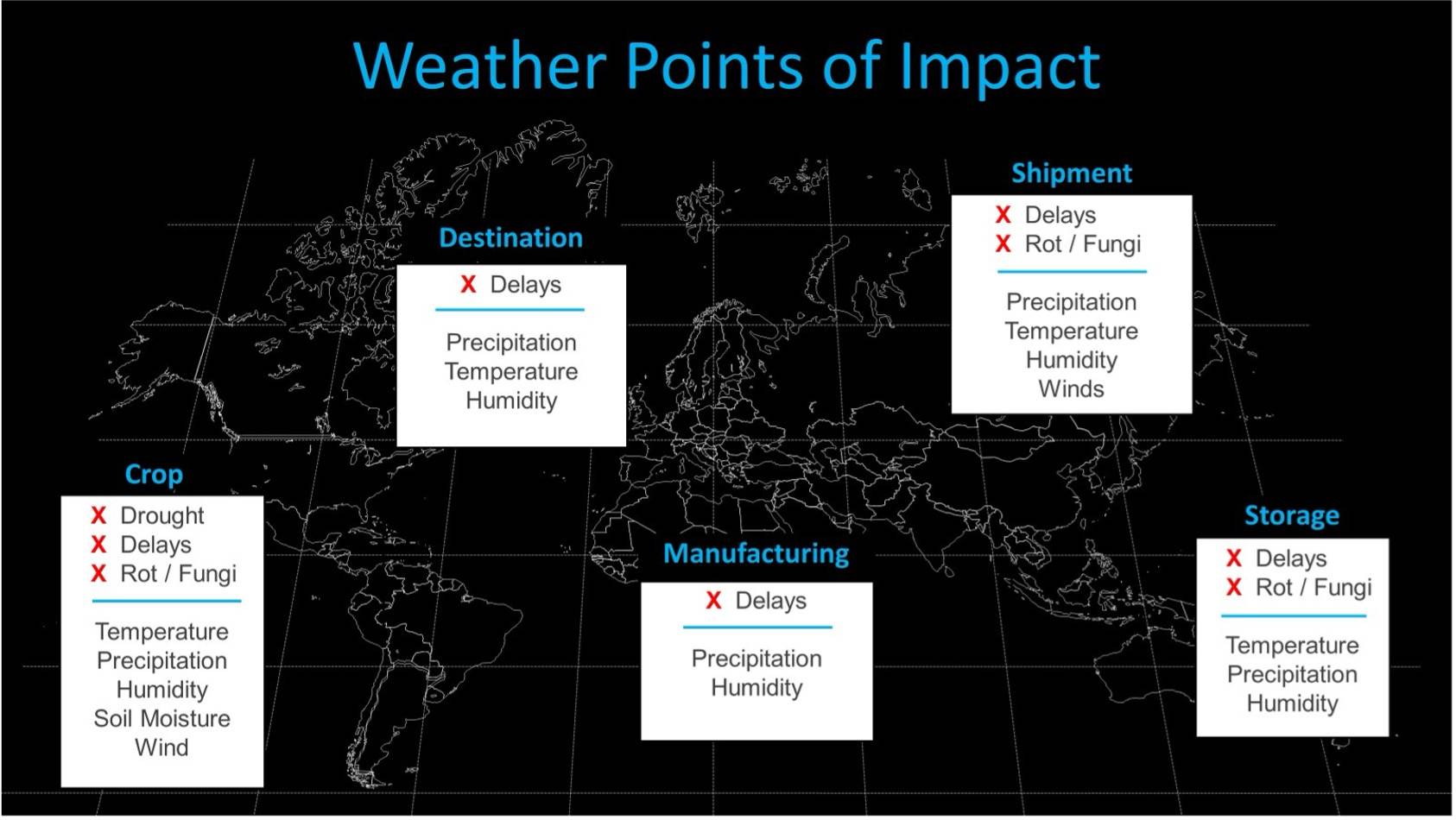 Weather Analytics- InitWeatherInitWeather offers advanced weather solutions including customised forecast products and analytics, helping users make smarter weather-based decisions. The API data platforms are built from rigorous R&D resulting in unique algorithms that combine data and isolates/merges areas to focus on locations of interest, essentially controlling the “noise” in the data. The Challenge